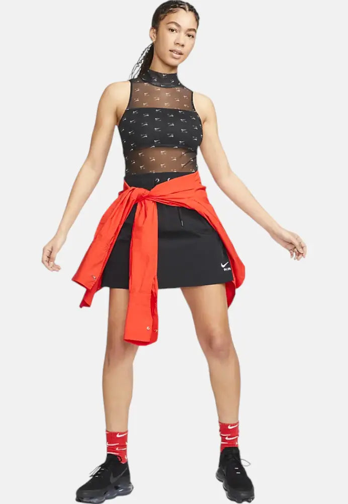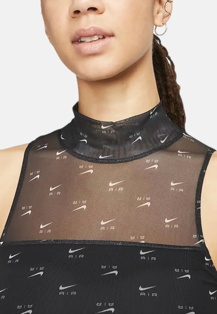Air Printed Mock Neck Mesh Bodysuit