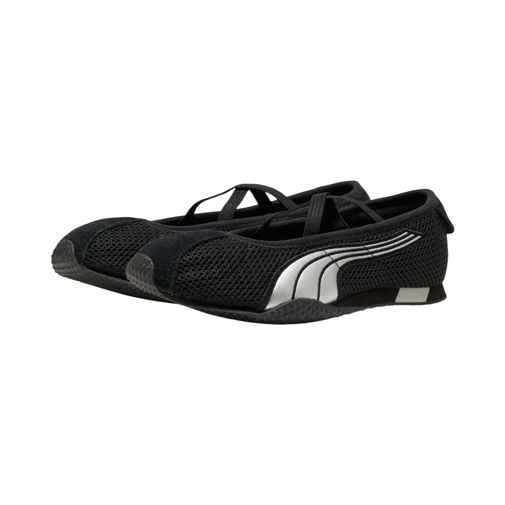Entra nell'eredità dello streetwear con le PUMA H-Street Ballet Black Sneakers, pensate per donne che desiderano agilità e un tocco urbano. Queste scarpe uniscono lo spirito veloce della corsa a uno stile cittadino minimalista e raffinato, offrendo una silhouette snella che parla da sé. Realizzate con mesh nero traspirante e dettagli a contrasto, ti mantengono comoda e fresca tutto il giorno. Perfette per chi vuole fondere la nostalgia sportiva con le vibrazioni moderne dello streetwear, queste sneakers sono una dichiarazione audace per il tuo look quotidiano.