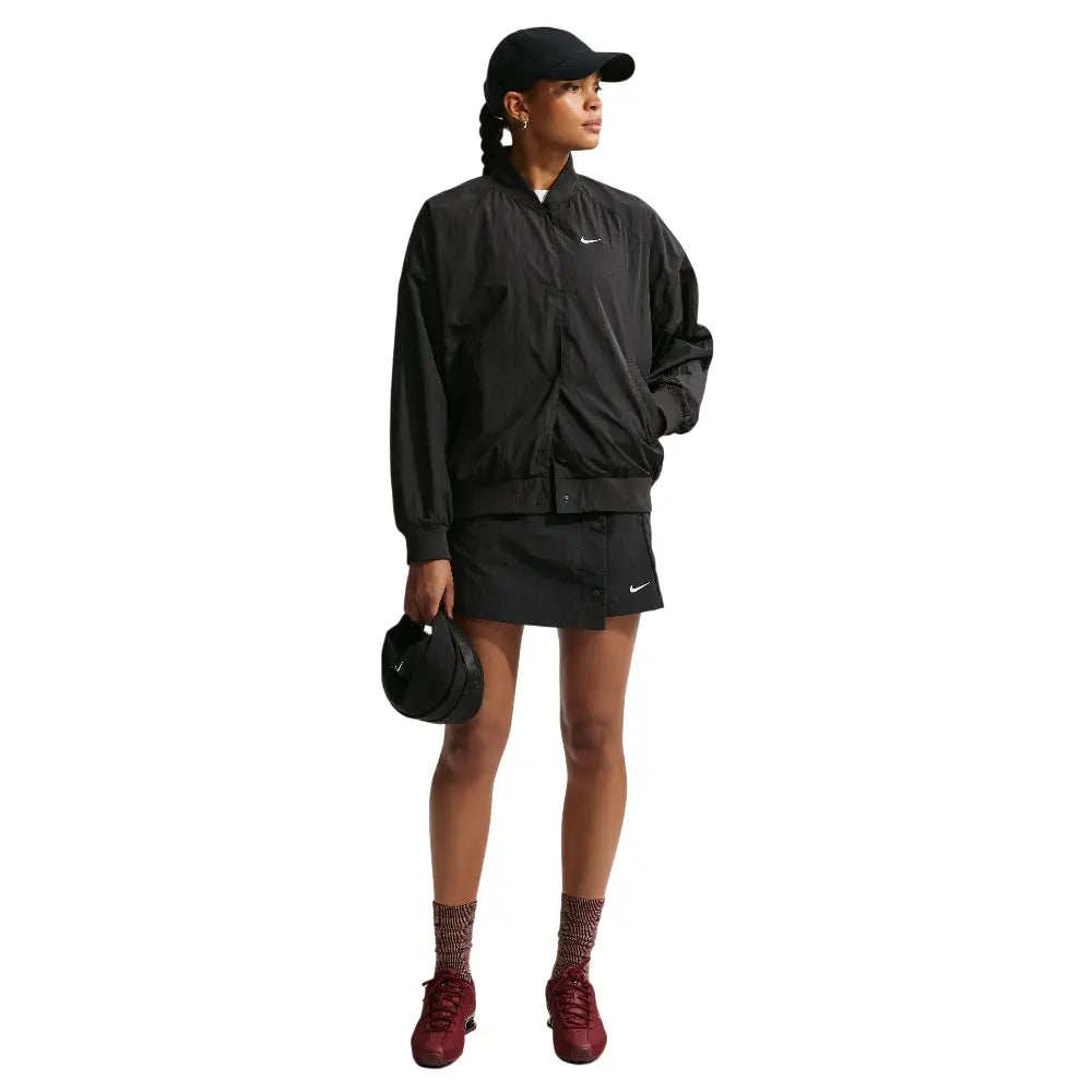 Step up your streetwear game with the Nike Sportswear Women's Oversized Varsity Jacket—a bold reimagination of the classic varsity style. Designed for those who demand style and function, this jacket features an extra roomy fit with dropped shoulders and voluminous sleeves, giving you that effortless, modern drape. Crafted from water-repellent taffeta with UV protection, it keeps you covered whether you're facing light rain or bright sun. The embroidered logo and snap front closure add authentic Nike flair, while the hands pockets keep your essentials close.