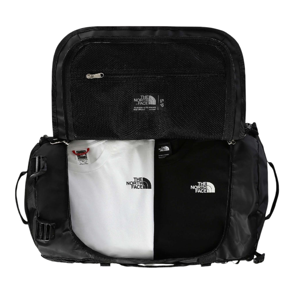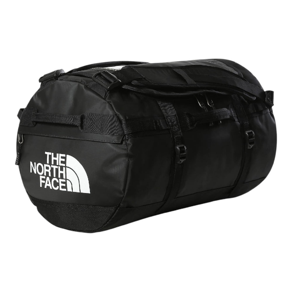 The North Face Base Camp Duffel Bag Black- S is built for those who demand durability and style on their adventures. This iconic duffel, sized at 50 liters, blends rugged outdoor functionality with urban streetwear appeal. Crafted from recycled polyester with a PFC-free DWR finish, it stands tough against water and tears, ensuring your gear stays protected no matter where you go. Its bold black design complements any look while offering supreme practicality.
