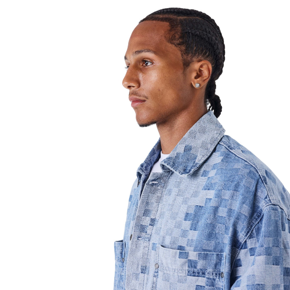 Step up your streetwear game with the Pixelated Checkered Denim Jacket Blue from PXP - PROJECT X PARIS. This bold piece channels the brand’s edgy Parisian roots, combining a classic denim vibe with a modern pixelated checkered pattern in cool blue tones. Designed for men who want to make a statement, its oversized fit and timeless collar deliver effortless urban style with a creative twist. Perfect for layering over jeans or cargo pants, this jacket is a versatile staple for any contemporary streetwear wardrobe.